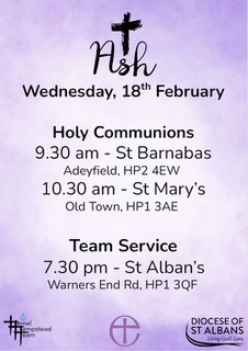 Wednesday 18th February at 7:30pm Ash Wednesday Team Service - At St Alban’s Church, Warners End.
