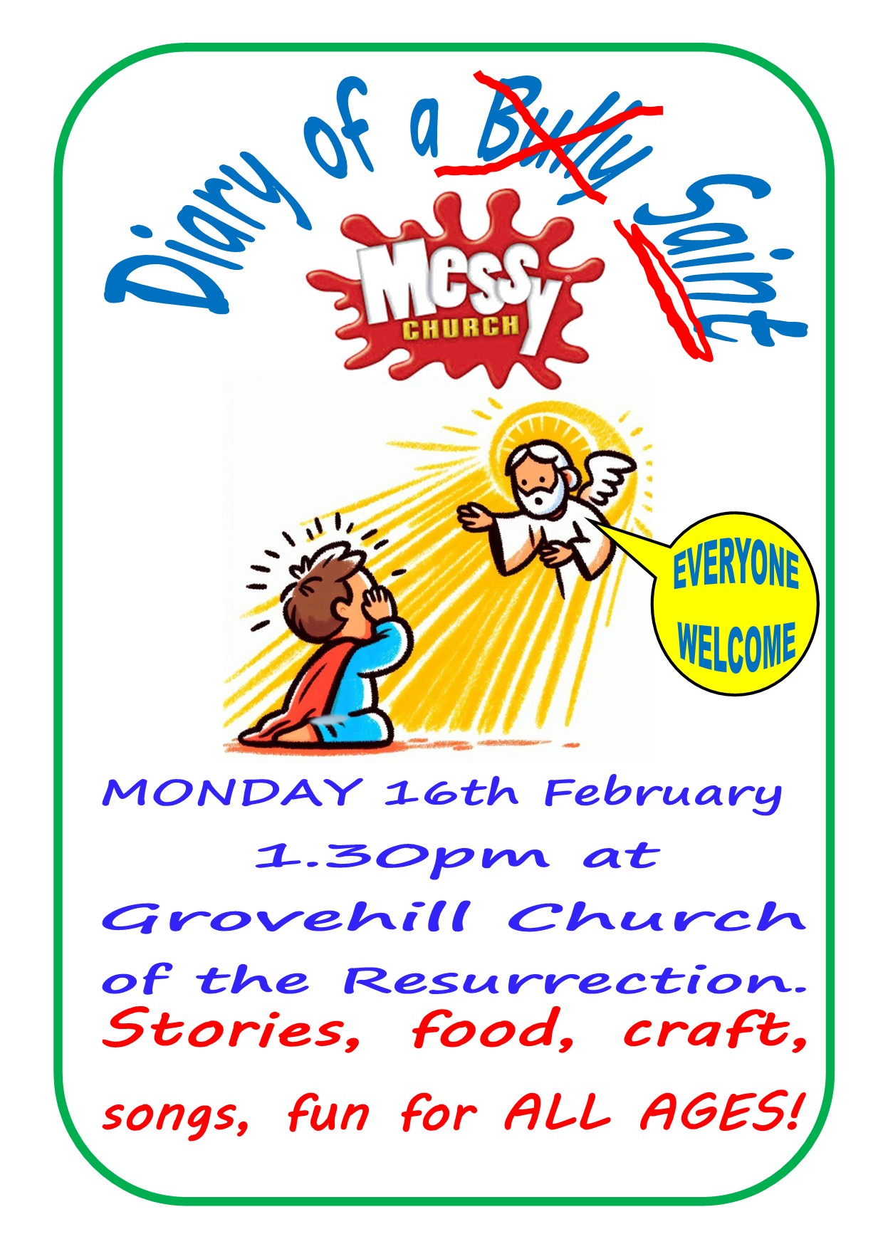 Monday 16th February at 1:30pm Messy Church in church/hall - see poster in Notice Sheet